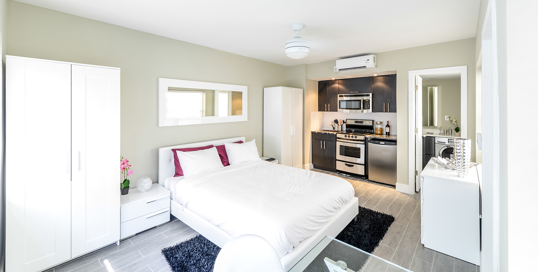 Every apartment comes fully furnished with hand-picked pieces that blend space efficiency with design